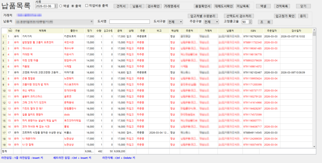 바로 납품 목록이 완성됩니다.