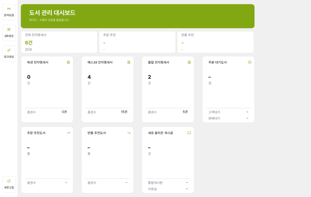 내 서점의 상황을 한눈에 확인할 수 있습니다.